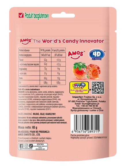 Dla fanów żelków 4D Strawberry Burst dostępna jest również aplikacja – gra AMOS 4D CRAFT. Wystarczy zeskanować QR kod na opakowaniu i przenieść się do pysznego świata wyobraźni.