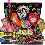 Dostarczony w pudełku upominkowym mega zestaw Brain Blasterz to mieszanka kwaśnych słodyczy, którą każdy pokocha! Różne rodzaje cukierków z gamy Brain Blasterz – cukierki landrynki, sopelki i batoniki do żucia, lizaki, kwaśne żele, proszki i pałeczki!!!!